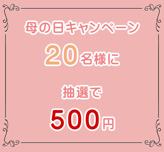 - 【フォロー&ダブルRTで当たる!母の日プレゼント企画】 日頃の感謝を込めて、抽選で20名様に500円をプレゼント!