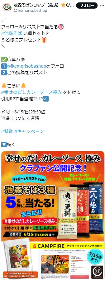 1⃣@ikemorisobashopをフォロー