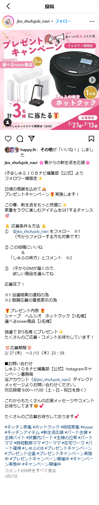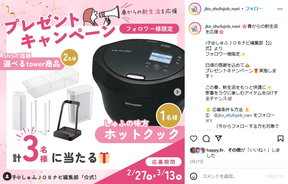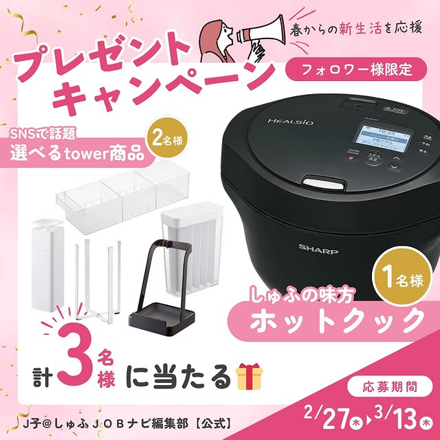 - ・シャープ ヘルシオ ホットクック【1名様】 ・選べるtower商品【2名様】