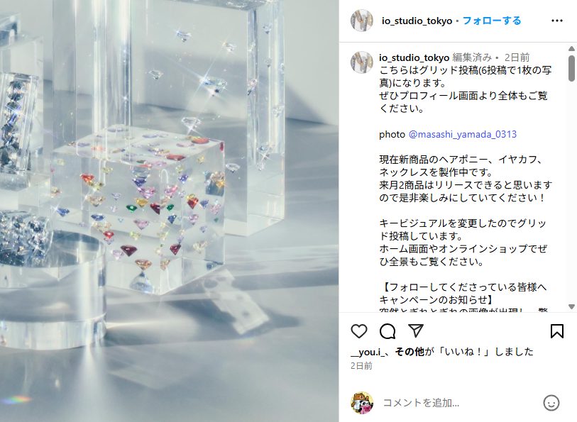 ①グリッド投稿6枚にいいね。