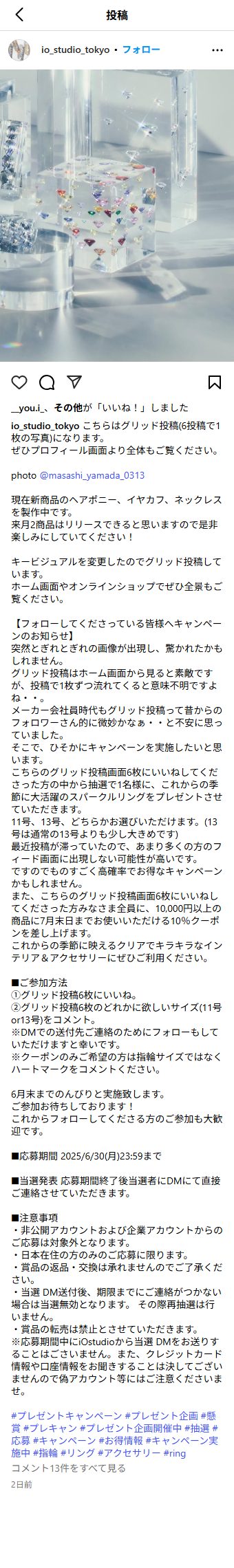 ②グリッド投稿6枚のどれかに欲しいサイズ(11号or13号)をコメント。