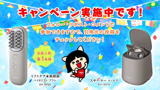 - ・スチーマー ナノケアEH-SA70 1名様 ・リフトケア★美顔器 バイタリフト ブラシEH-SP60 1名様
