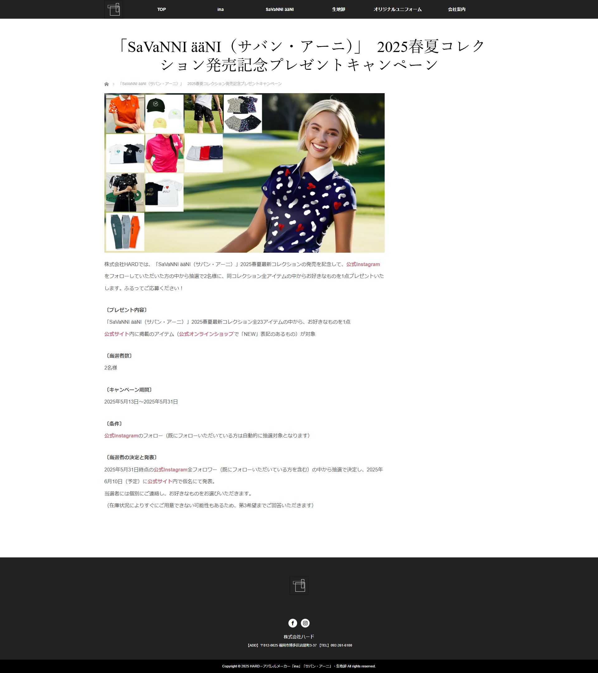 - 個性派ゴルフウェア「サバン・アーニ」2025春夏コレクション発売記念プレゼント