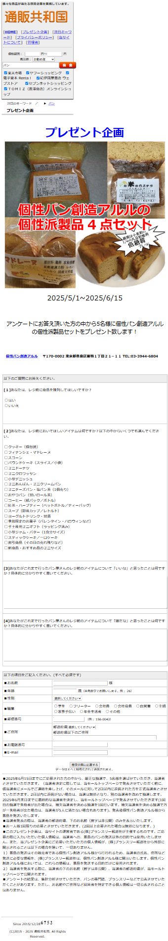 アンケートにお答え頂いた方の中から5名様に個性パン創造アルルの個性派製品セットをプレゼント