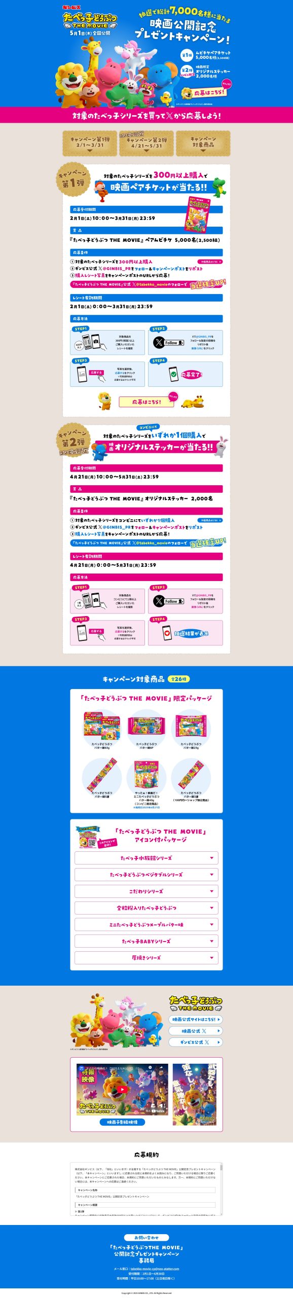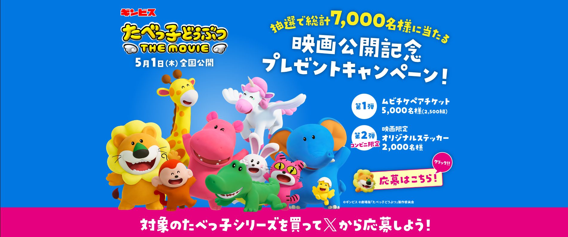 - 「たべっ子どうぶつ THE MOVIE」ムビチケペアチケット 5,000名様(2,500組)