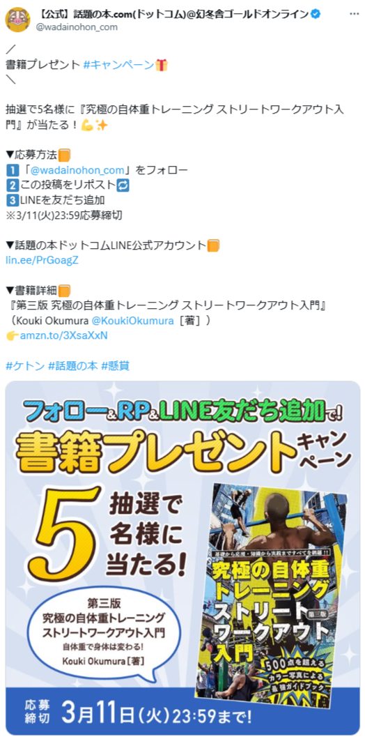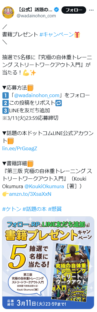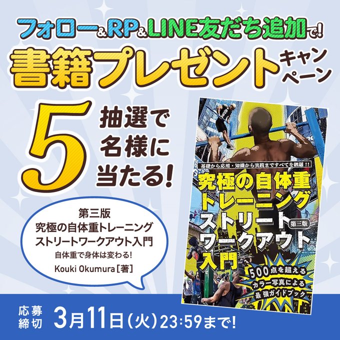 - 書籍『究極の自体重トレーニング ストリートワークアウト入門』 5名様