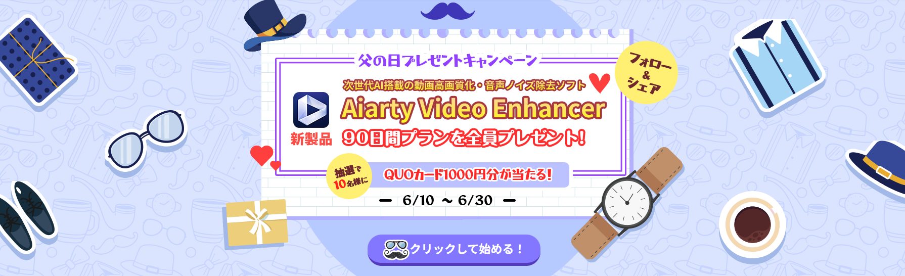 - ・新製品 Aiarty Video Enhancerの90日間プランもれなくプレゼント ・QUOカード1000円分 10名様