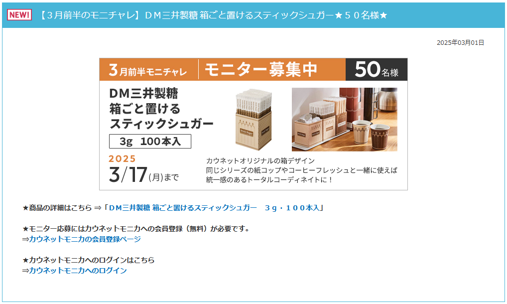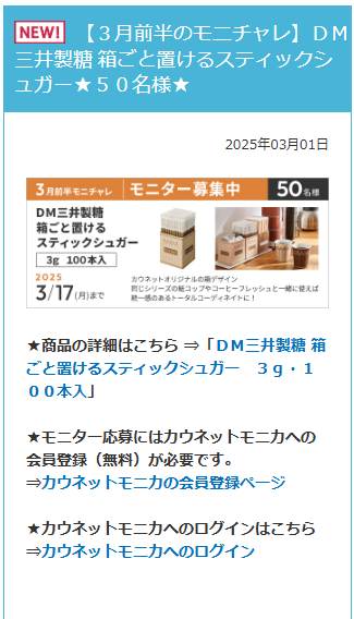 モニター応募にはカウネットモニカへの会員登録(無料)が必要です。