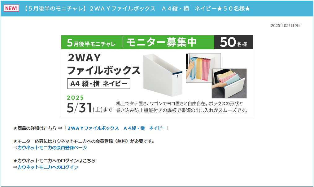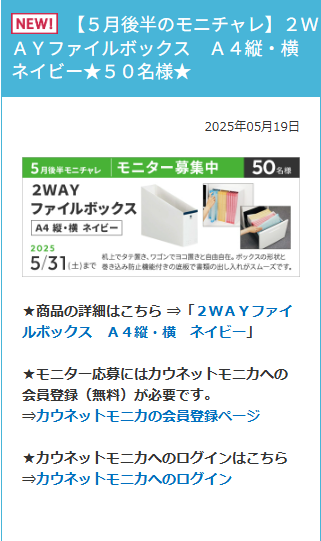 モニター応募にはカウネットモニカへの会員登録(無料)が必要です。