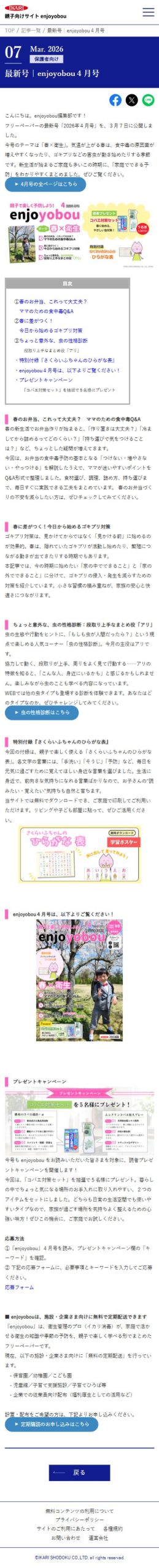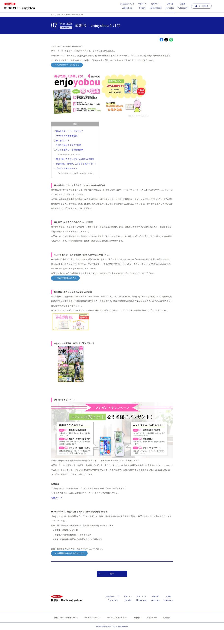 ①『enjoyobou』4月号を読み、プレゼントキャンペーン欄の「キーワード」を確認。
