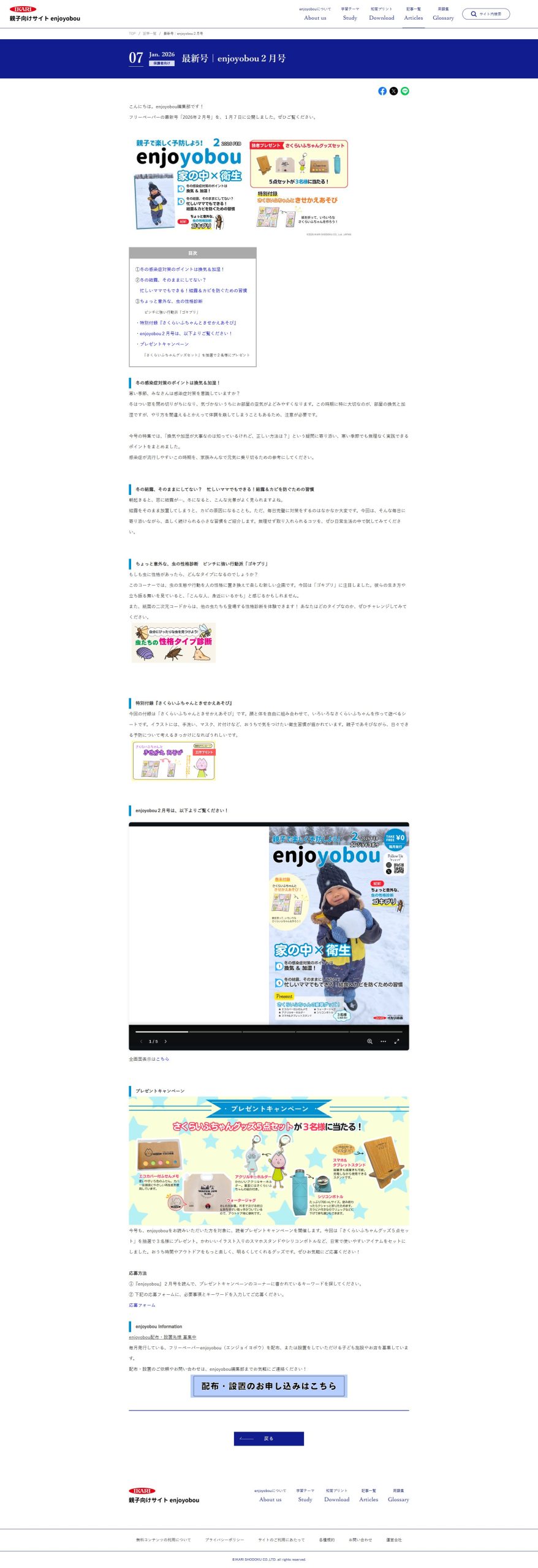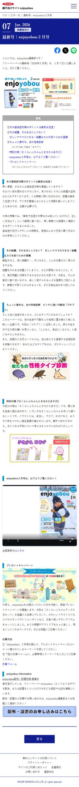 ①『enjoyobou』2月号を読んで、プレゼントキャンペーンのコーナーに書かれているキーワードを探してください。