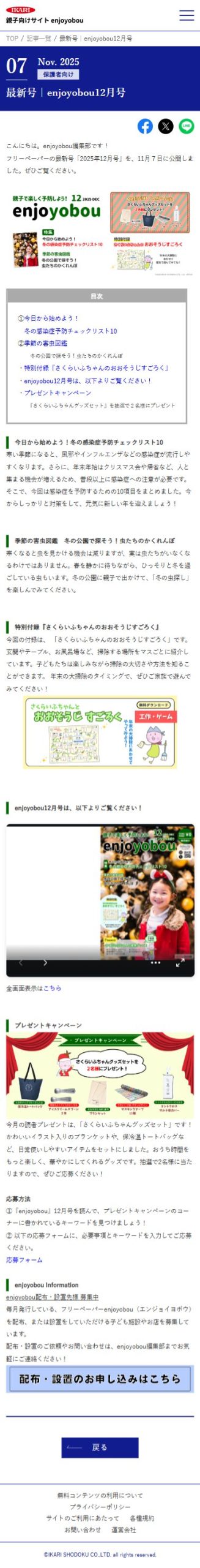 ①『enjoyobou』12月号を読んで、プレゼントキャンペーンのコーナーに書かれているキーワードを見つけましょう!