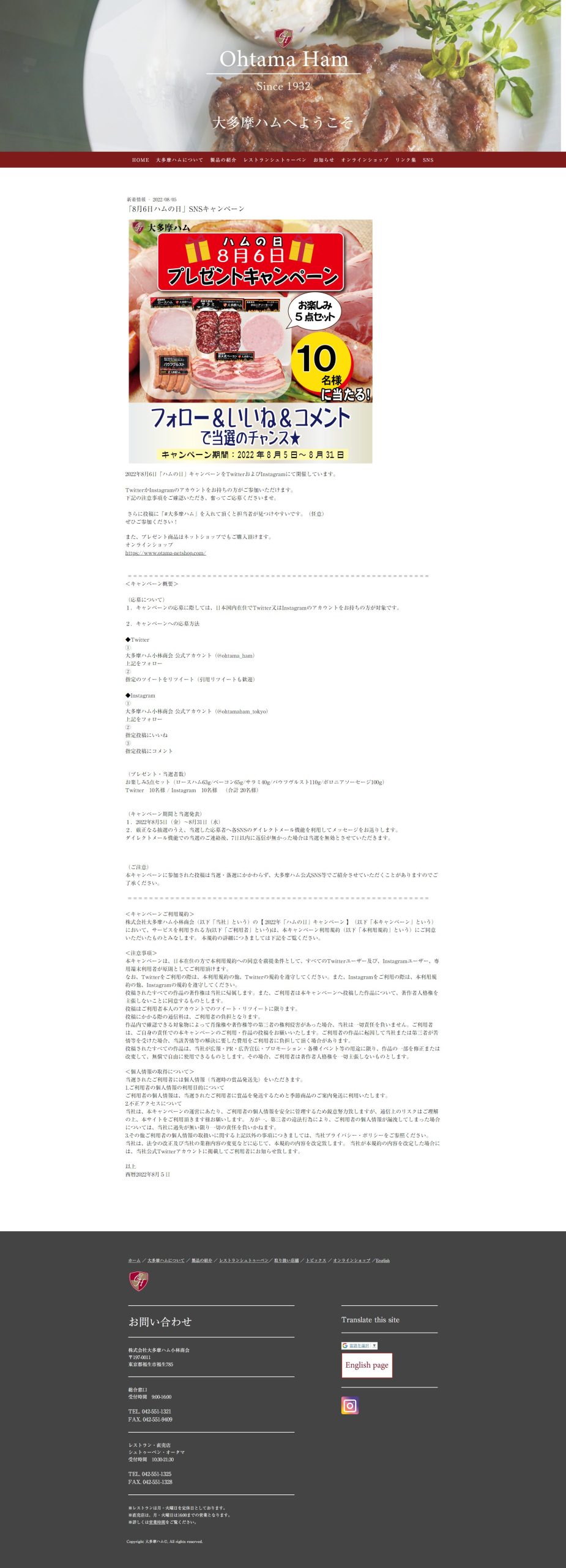 https://www.otama.co.jp/2022/08/05/8%E6%9C%886%E6%97%A5%E3%83%8F%E3%83%A0%E3%81%AE%E6%97%A5-sns%E3%82%AD%E3%83%A3%E3%83%B3%E3%83%9A%E3%83%BC%E3%83%B3/