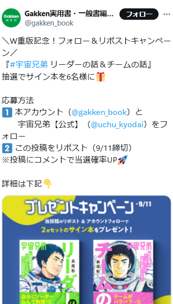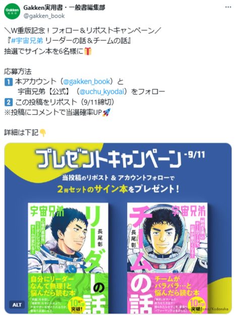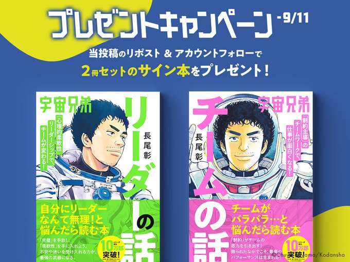 - 『宇宙兄弟リーダーの話&チームの話』W重版記念!フォロー&リポストキャンペーン