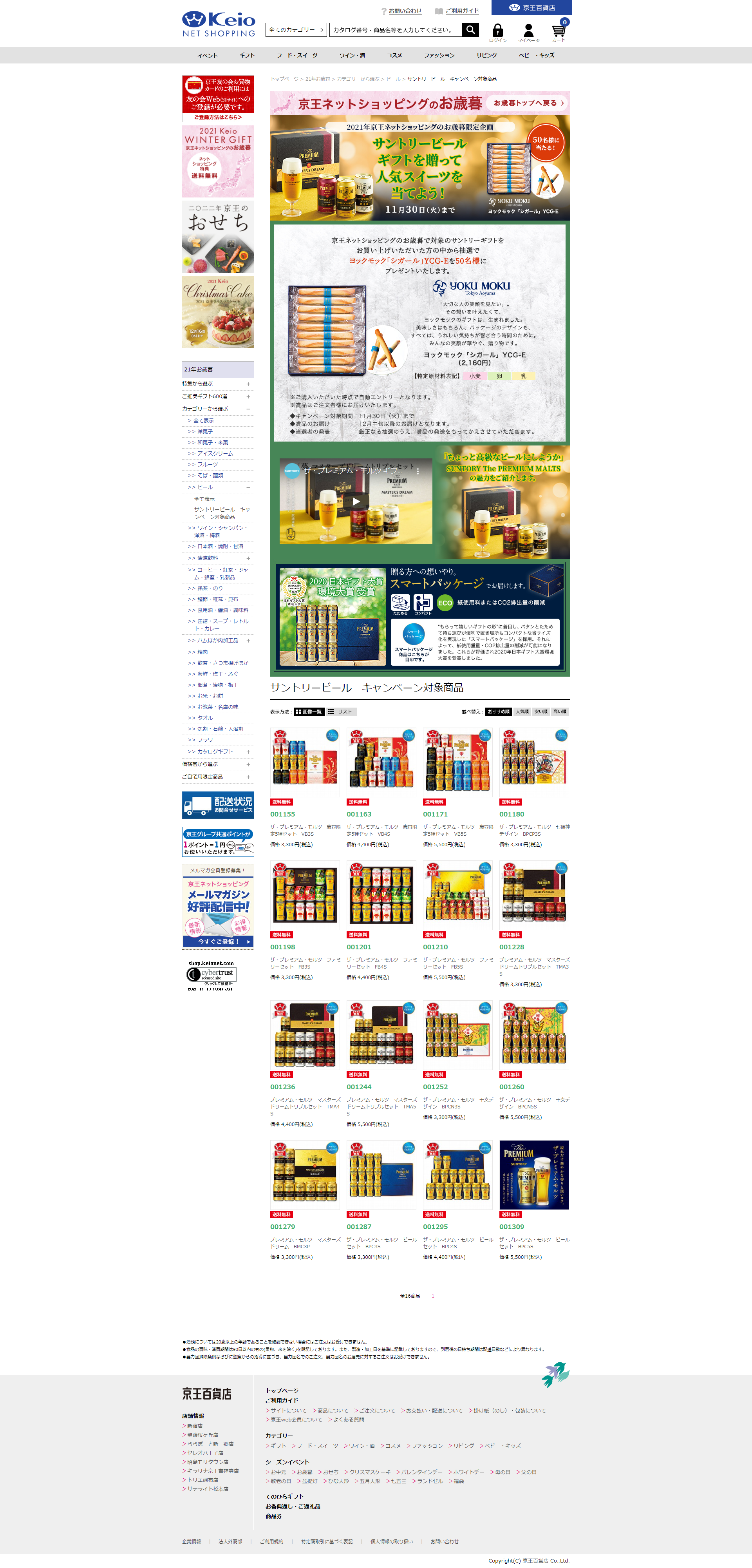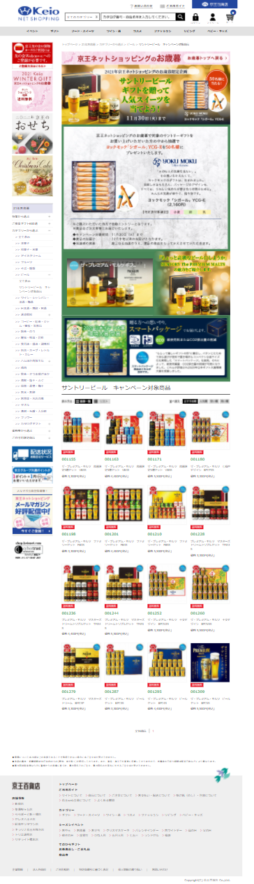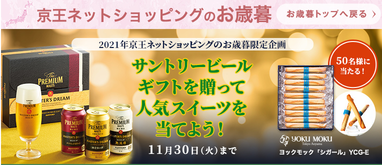 - KEIOネットショッピングでサントリービールのお歳暮をお贈りになった方の中から抽選で五十名様にヨックモックをプレゼント♪