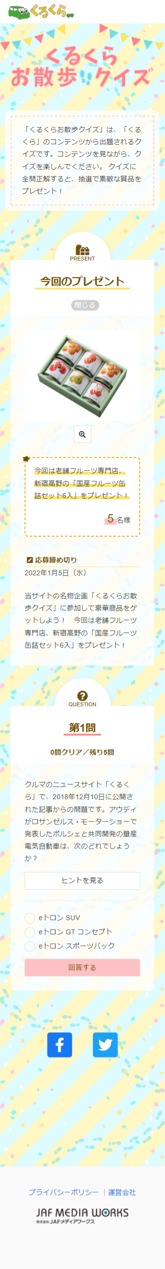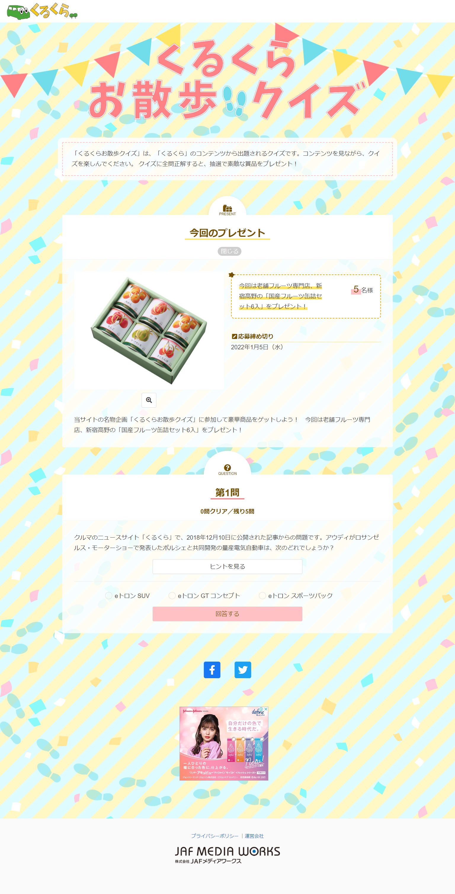 - 【株式会社JAFメディアワークス】くるくらお散歩クイズ