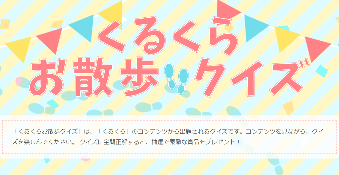 - 「くるくらお散歩クイズ」は、「くるくら」のコンテンツから出題されるクイズです。