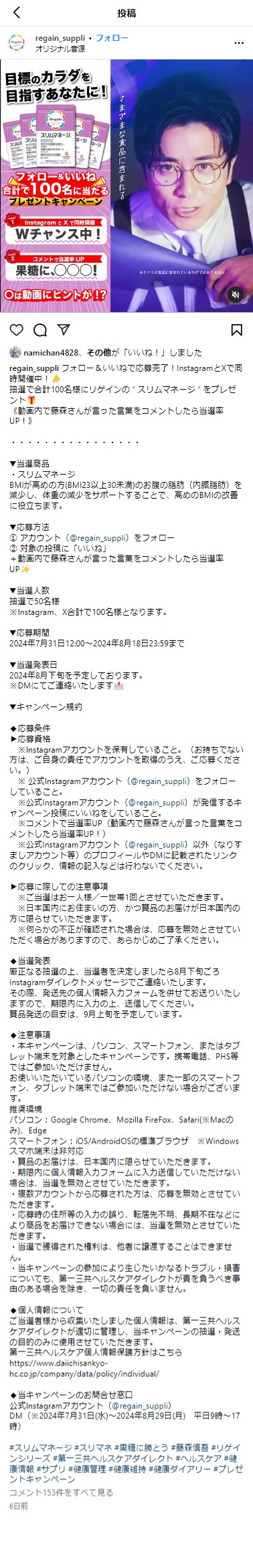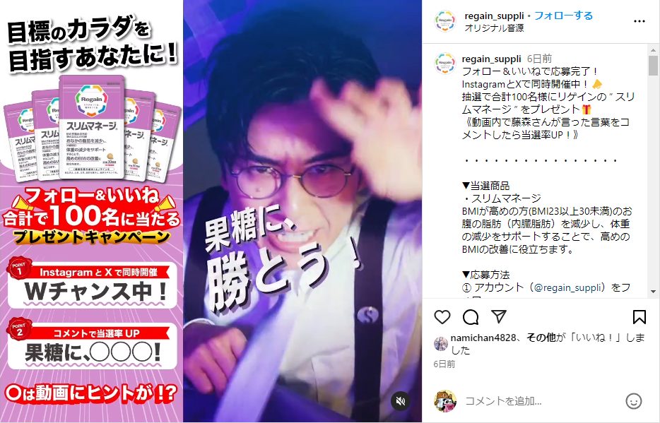 +動画内で藤森さんが言った言葉をコメントしたら当選率UP