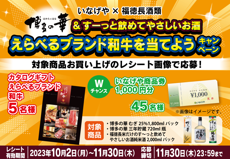 - カタログギフト えらべるブランド和牛 [5名様] Wチャンス いなげや商品券1,000円分 [45名様]