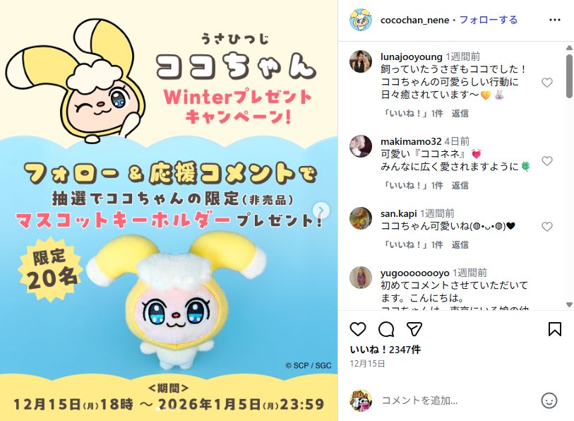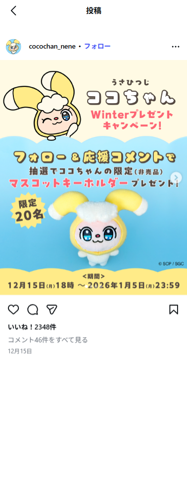 - うさひつじ ココちゃん Winterプレゼントキャンペーン!