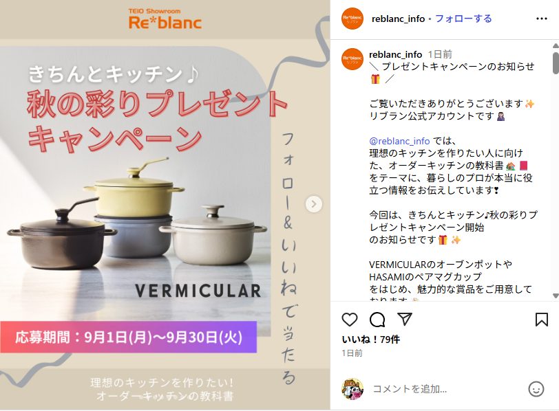 1. このアカウント @reblanc_info を「フォロー」