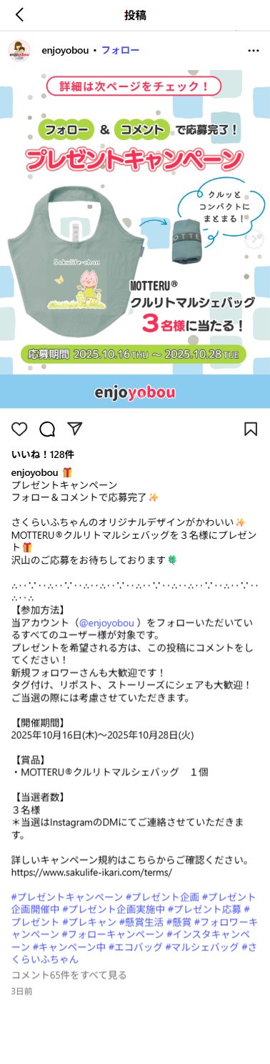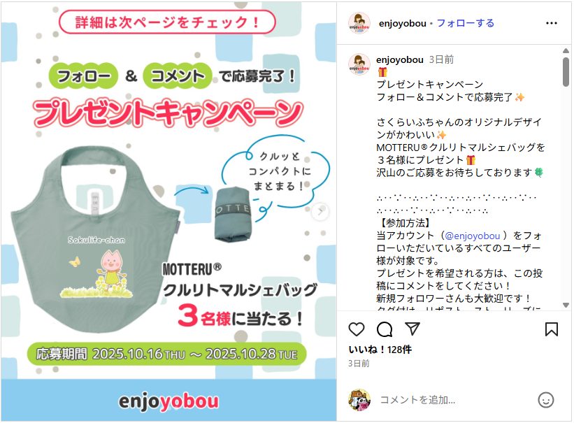さくらいふちゃんのエコバッグが当たる!Instagramキャンペーン