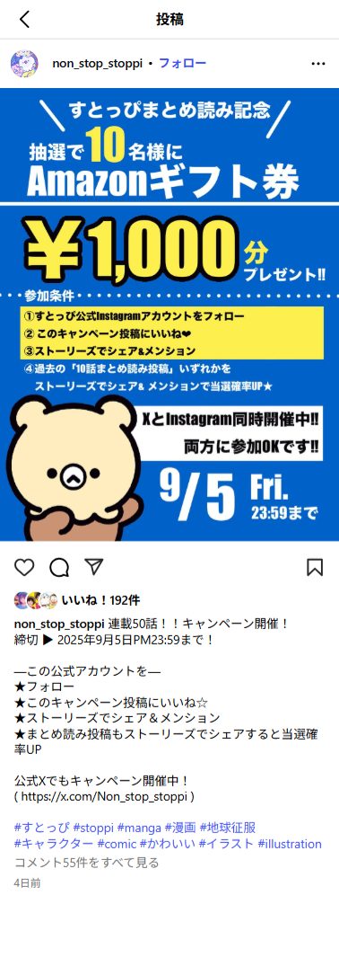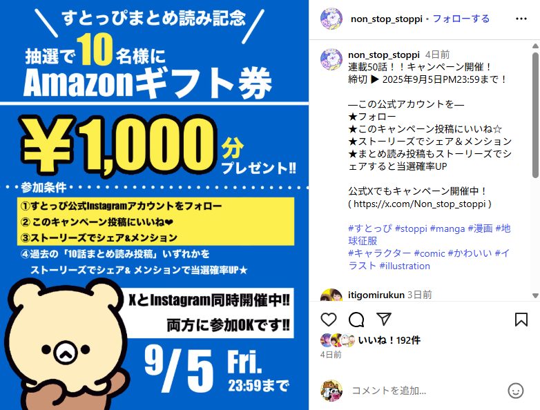 ★まとめ読み投稿もストーリーズでシェアすると当選確率UP
