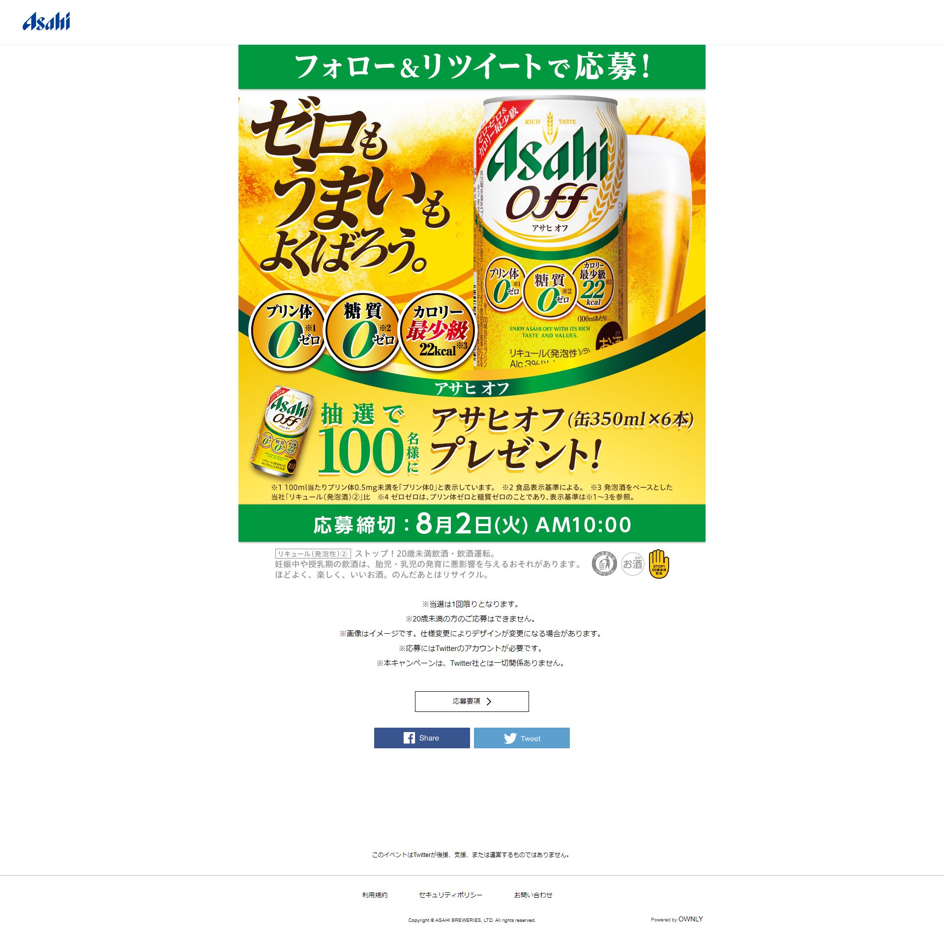 2.「#アサヒオフ」と「#ゼロもうまいもよくばろう」の2つのハッシュタグがついたアサヒビール公式アカウントのキャンペーン対象のツイートをキャンペーン期間内にリツイートしてください。