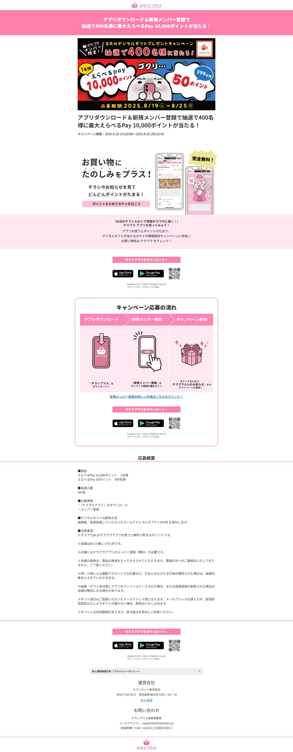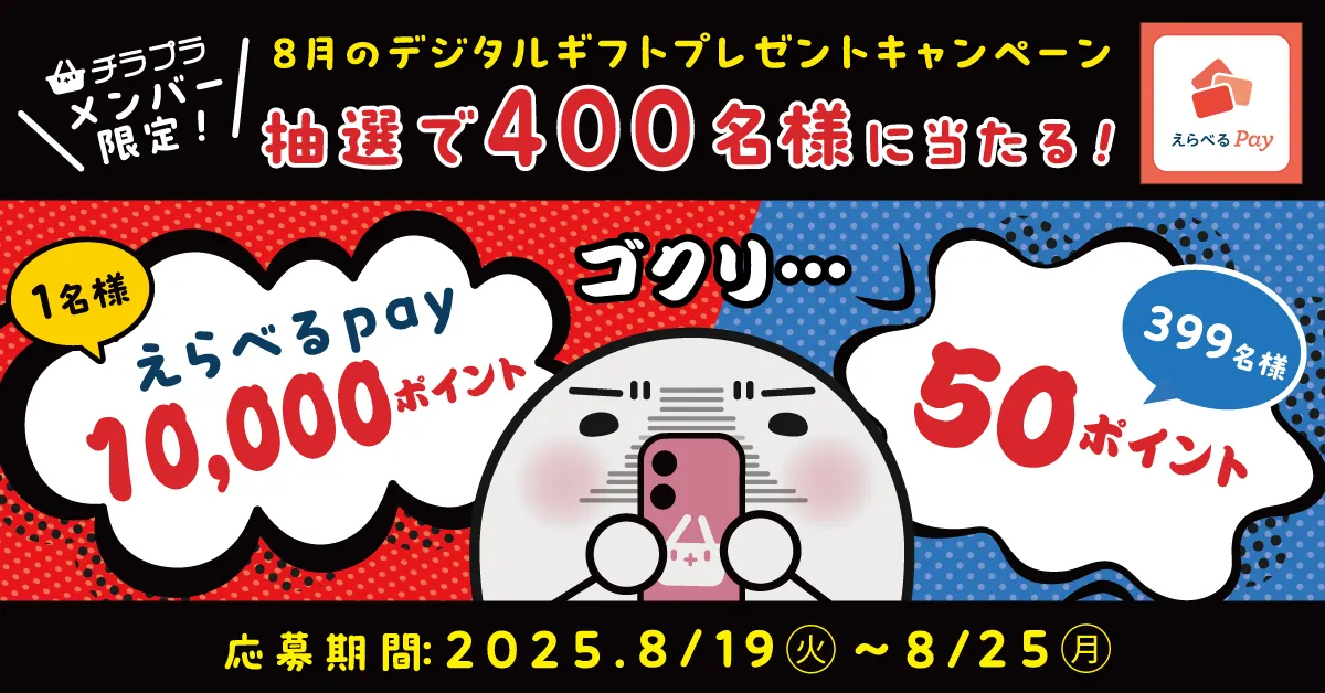 ・えらべるPay 10,000ポイント1名様 ・えらべるPay 50ポイント 399名様