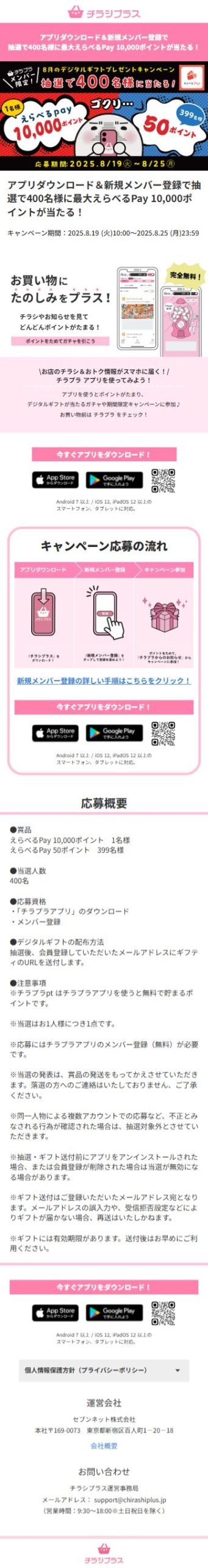 アプリダウンロード&新規メンバー登録で 抽選で400名様に最大えらべるPay 10,000ポイントが当たる!