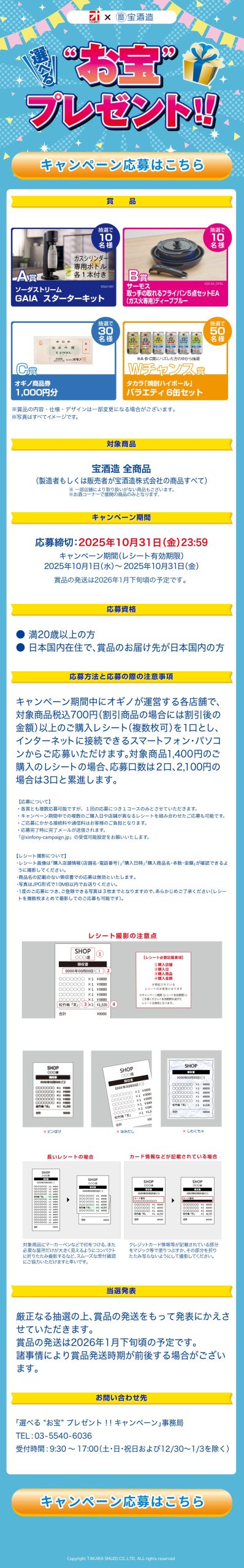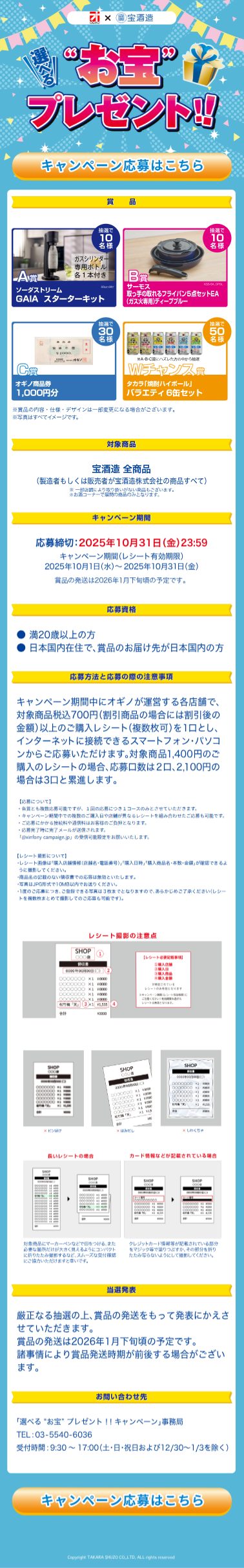 - オギノ・宝酒造 宝製品を買って当たる!選べる”お宝”プレゼント!!キャンペーン