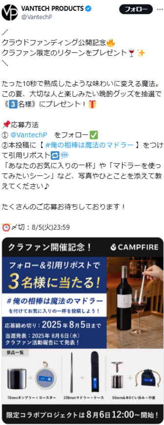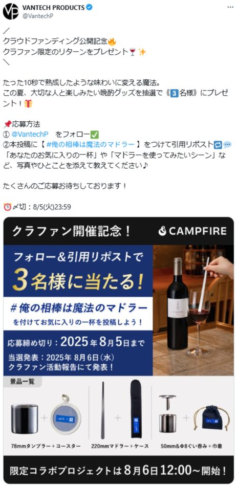 - クラウドファンディング公開記念🔥 クラファン限定のリターンをプレゼント🍷✨
