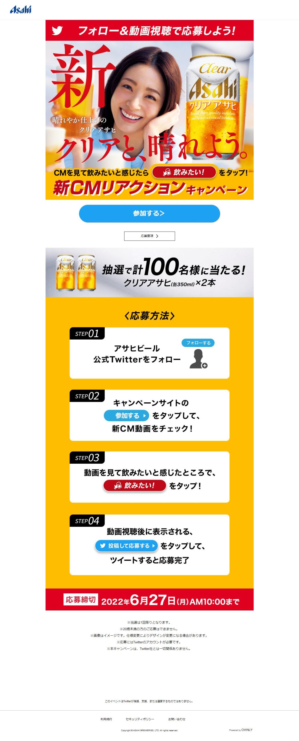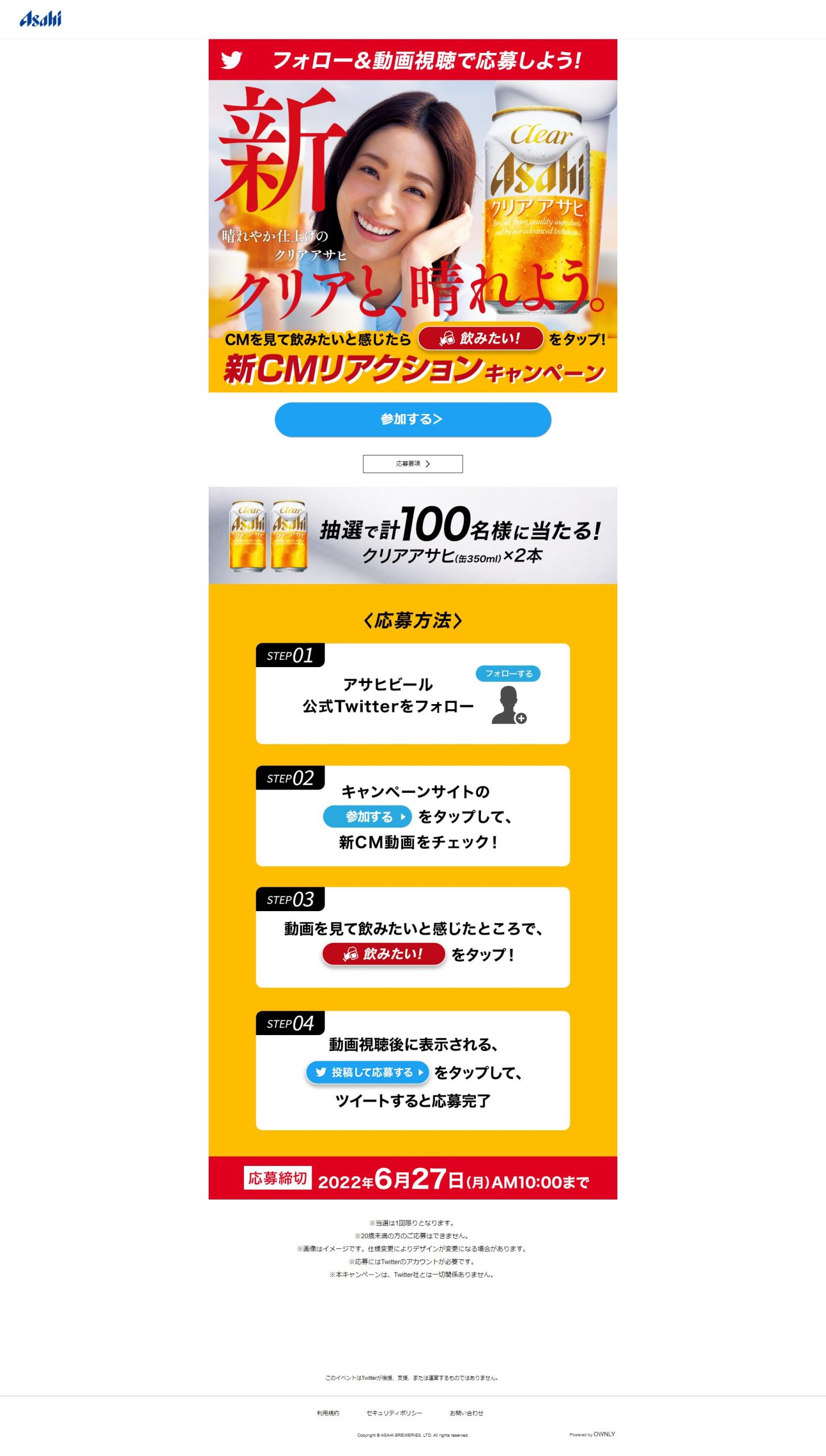 - クリアアサヒ 新CMリアクションキャンペーン
