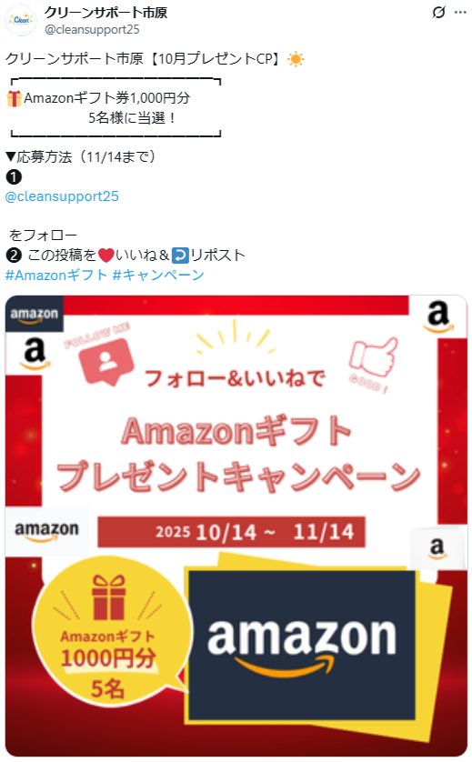 - クリーンサポート市原【10月プレゼントCP】☀️