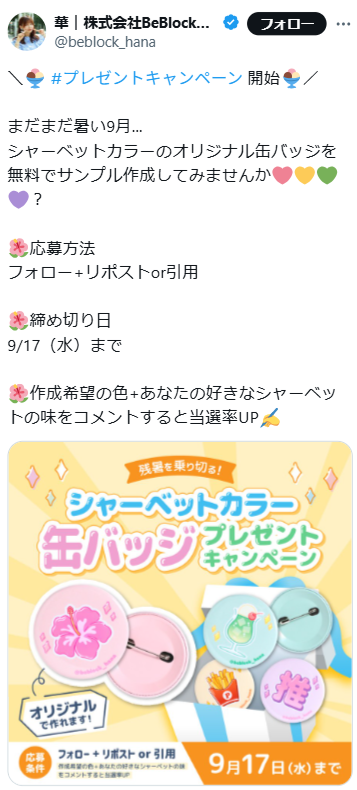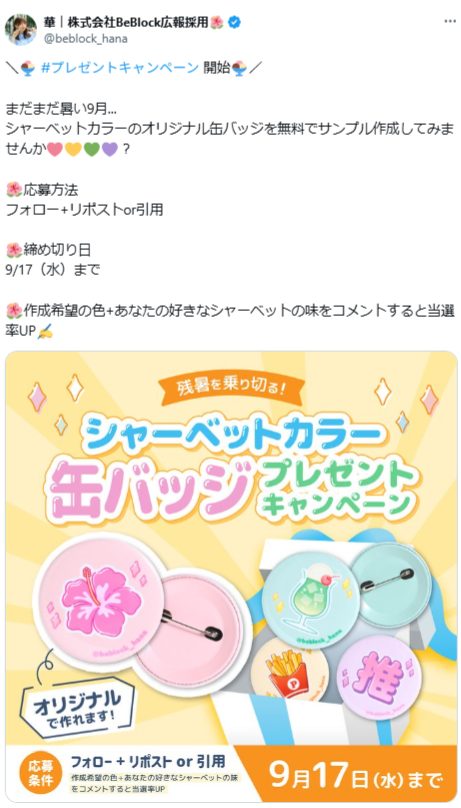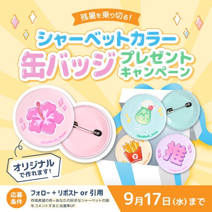 シャーベットカラーのオリジナル缶バッジを無料でサンプル作成