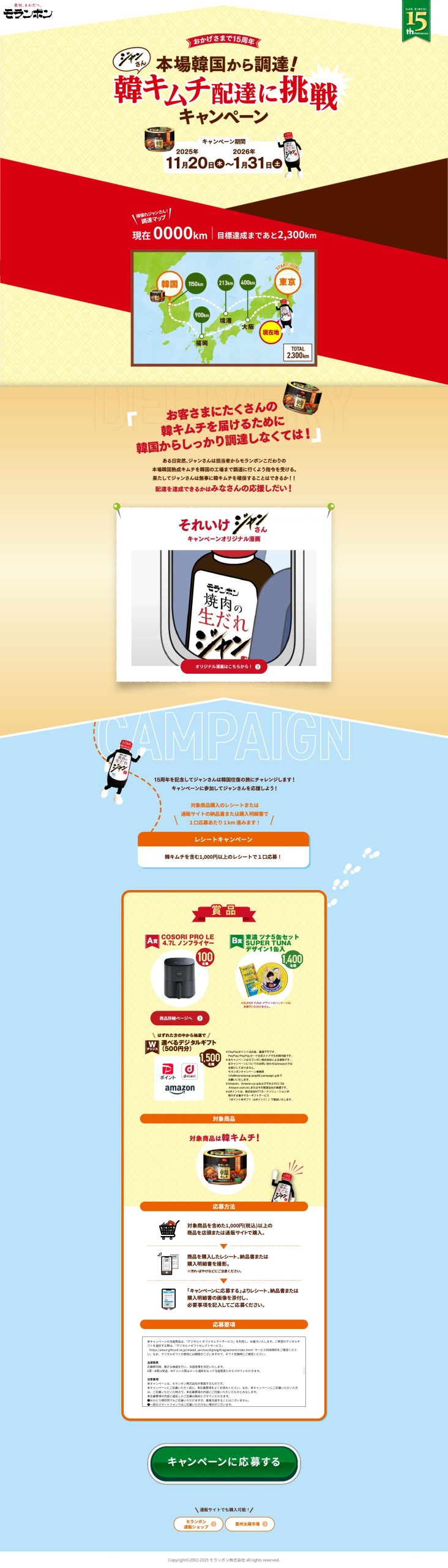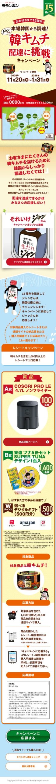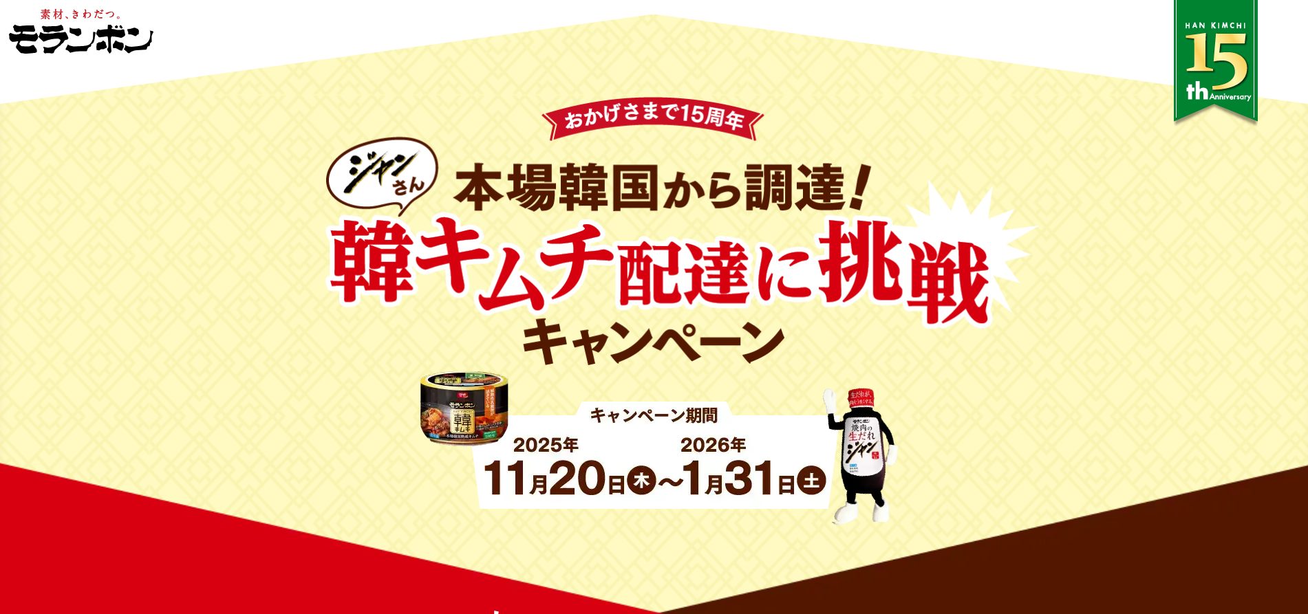 (1)モランボンキャンペーンページ(https://www.moranbong.co.jp/hankimchi15th)より応募要項を確認後、サイト下部にある「キャンペーンに応募する」ボタンよりお進みください。