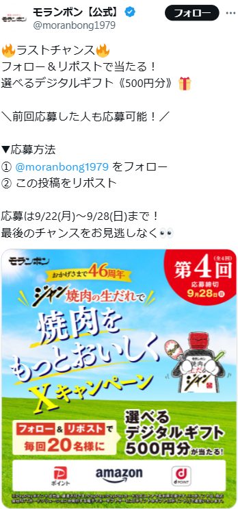 - ジャン焼肉の生ダレで焼肉をもっとおいしくXキャンペーン