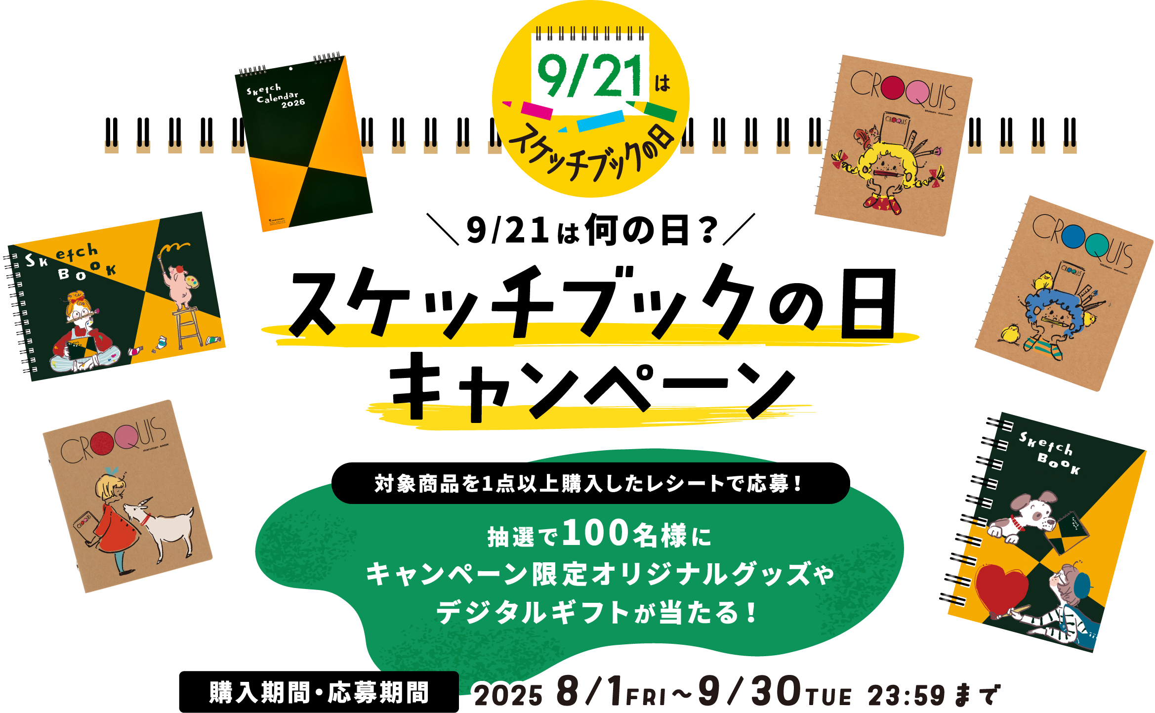 ※指定ハッシュタグ「 #スケッチブックの日キャンペーン2025 」をつけて購入品の画像をXやInstagramでポストいただくと、当選確率が2倍になります。