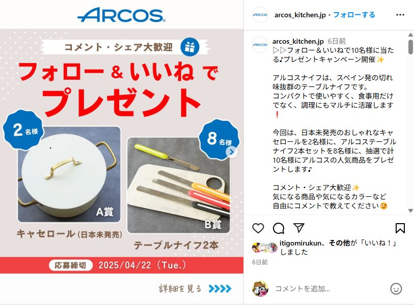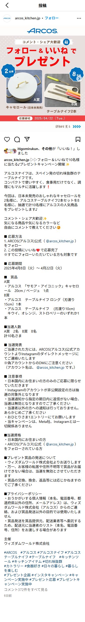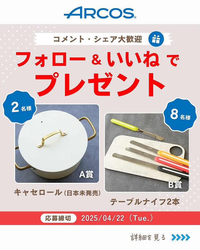 1. ARCOS(アルコス)公式( @arcos_kitchen.jp )をフォロー