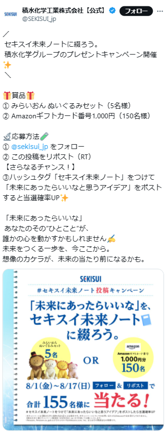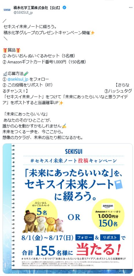 - セキスイ未来ノートに綴ろう プレゼントキャンペーン