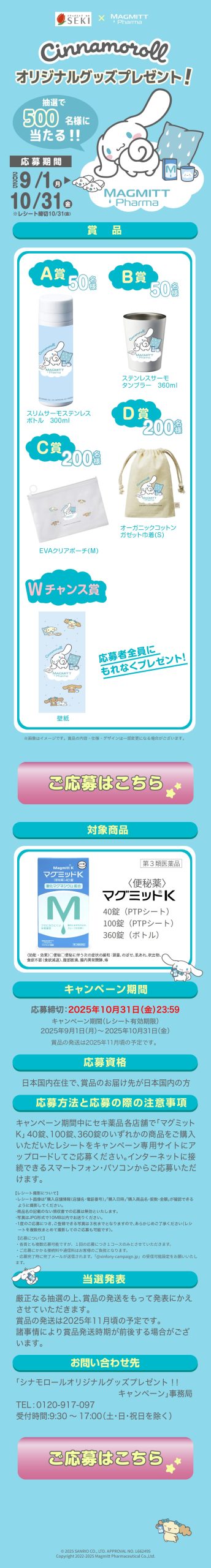 - セキ薬品×マグミット製薬シナモロールオリジナルグッズプレゼントキャンペーン
