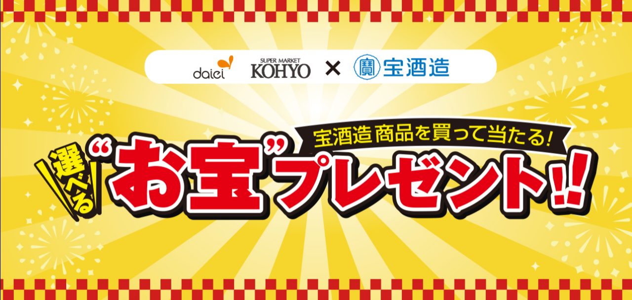 ダイエー近畿・KOHYO・宝酒造 宝商品を買って当たる!選べる”お宝”プレゼント!!キャンペーン