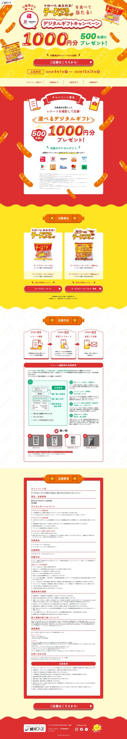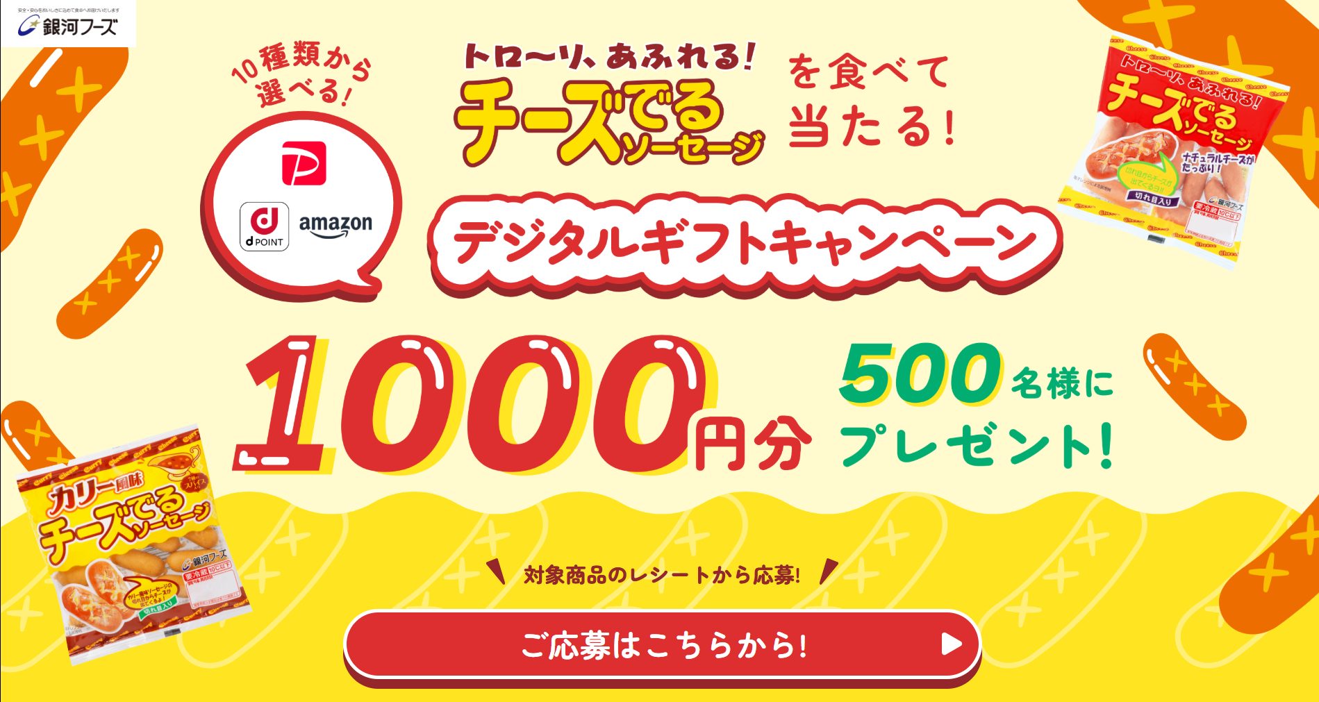 - チーズでるソーセージを食べて当たる!選べるデジタルギフトキャンペーン