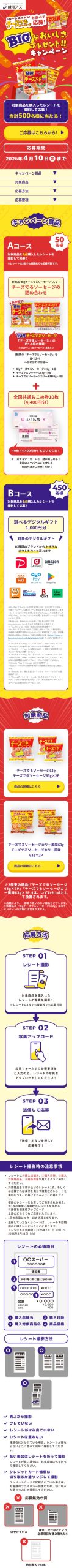 - チーズでるソーセージを食べて応募!BIGなおいしさプレゼントキャンペーン