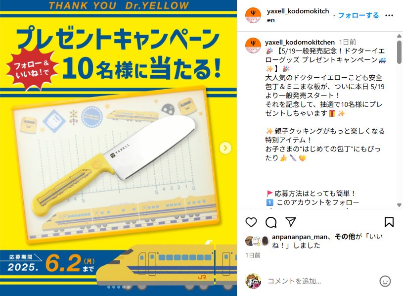 - ドクターイエローこども安全包丁&ミニまな板 10名様