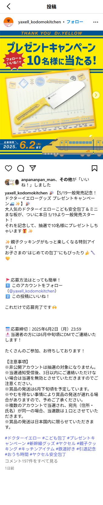 1️⃣ このアカウントをフォロー(@yaxell_kodomokitchen)