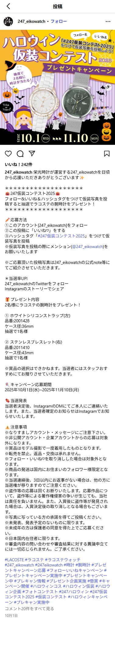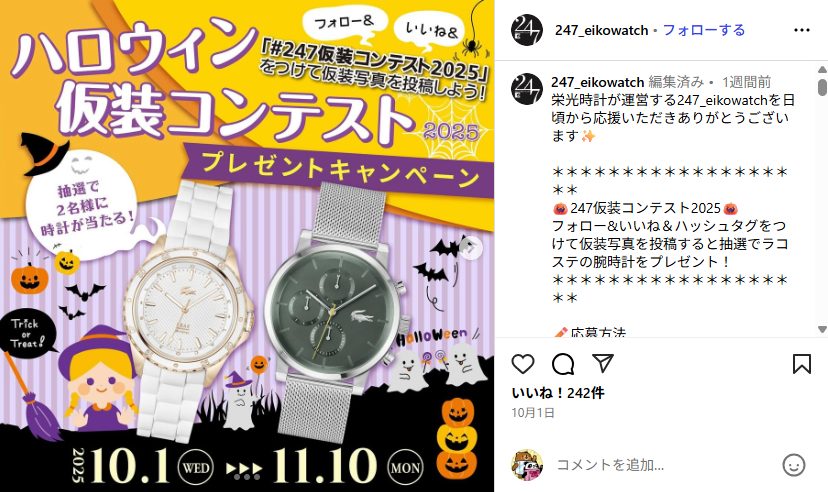 ※仮装写真を投稿の際にメンション(@247_eikowatch)をお願いいたします