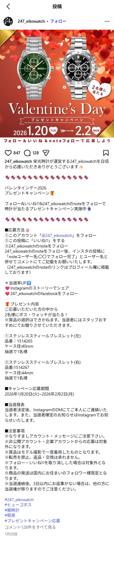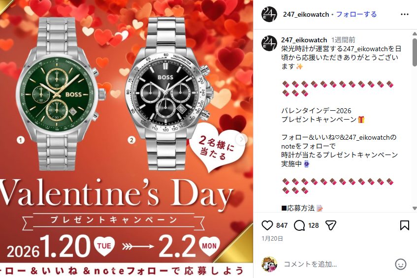 247_eikowatchのnoteをフォロー後、インスタの投稿に「noteユーザー名:〇〇でフォロー完了」とユーザー名と併せてコメントにてご記載をお願いいたします。