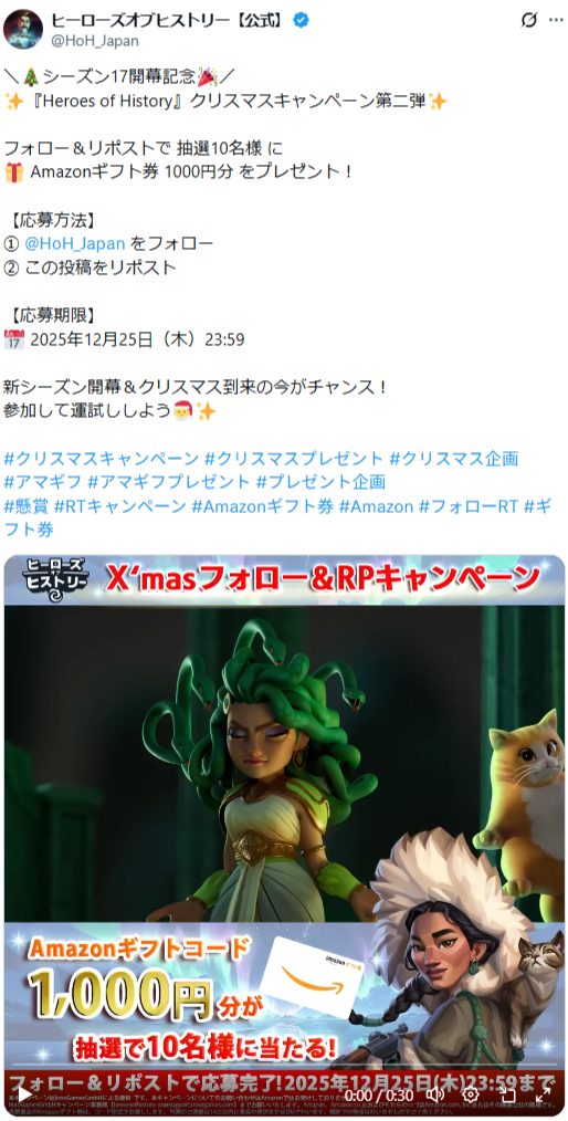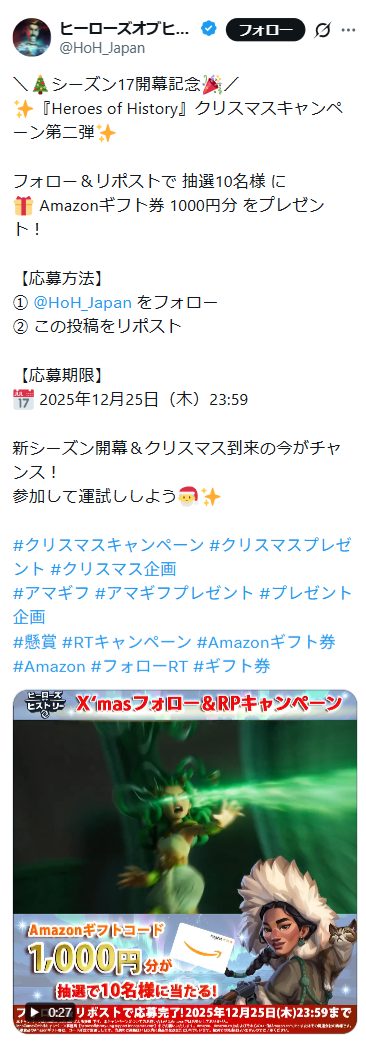 - ヒーローズオブヒストリー クリスマスキャンペーン第二弾
