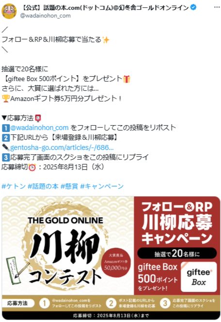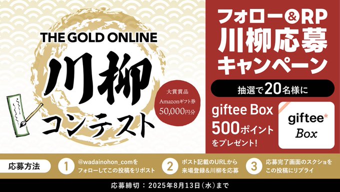 - ・giftee Box 500ポイント20名様 ・大賞:Amazonギフト券5万円分